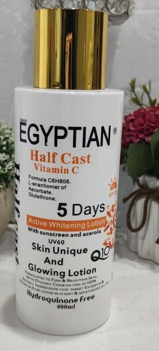 Experience the transformative power of radiant skin with Egyptian Half Cast Vitamin C Active Whitening Lotion. This advanced skincare formula combines the potent brightening effects of Vitamin C with a blend of natural botanical extracts to visibly reduce dark spots, discoloration, and hyperpigmentation. Designed for all skin types, especially dull or uneven-toned skin, the lotion works deep within the skin’s layers to lighten blemishes and promote a more luminous, even complexion.