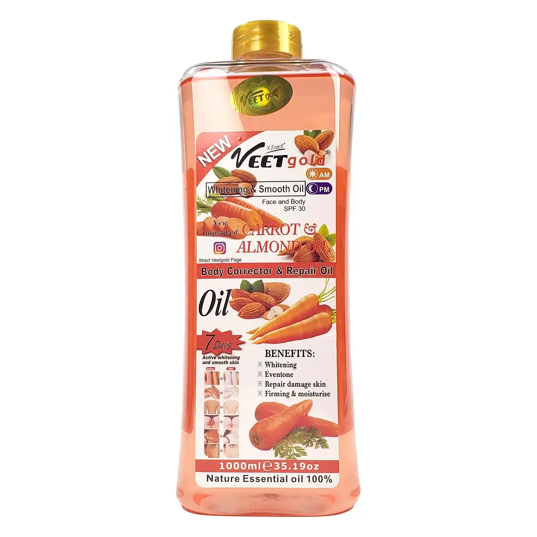Veetgold Carrot & Almond Oil is a luxurious skincare solution crafted from 100% pure organic extracts of carrot and almond oils. Designed to rejuvenate both face and body, this oil offers a multitude of benefits:​